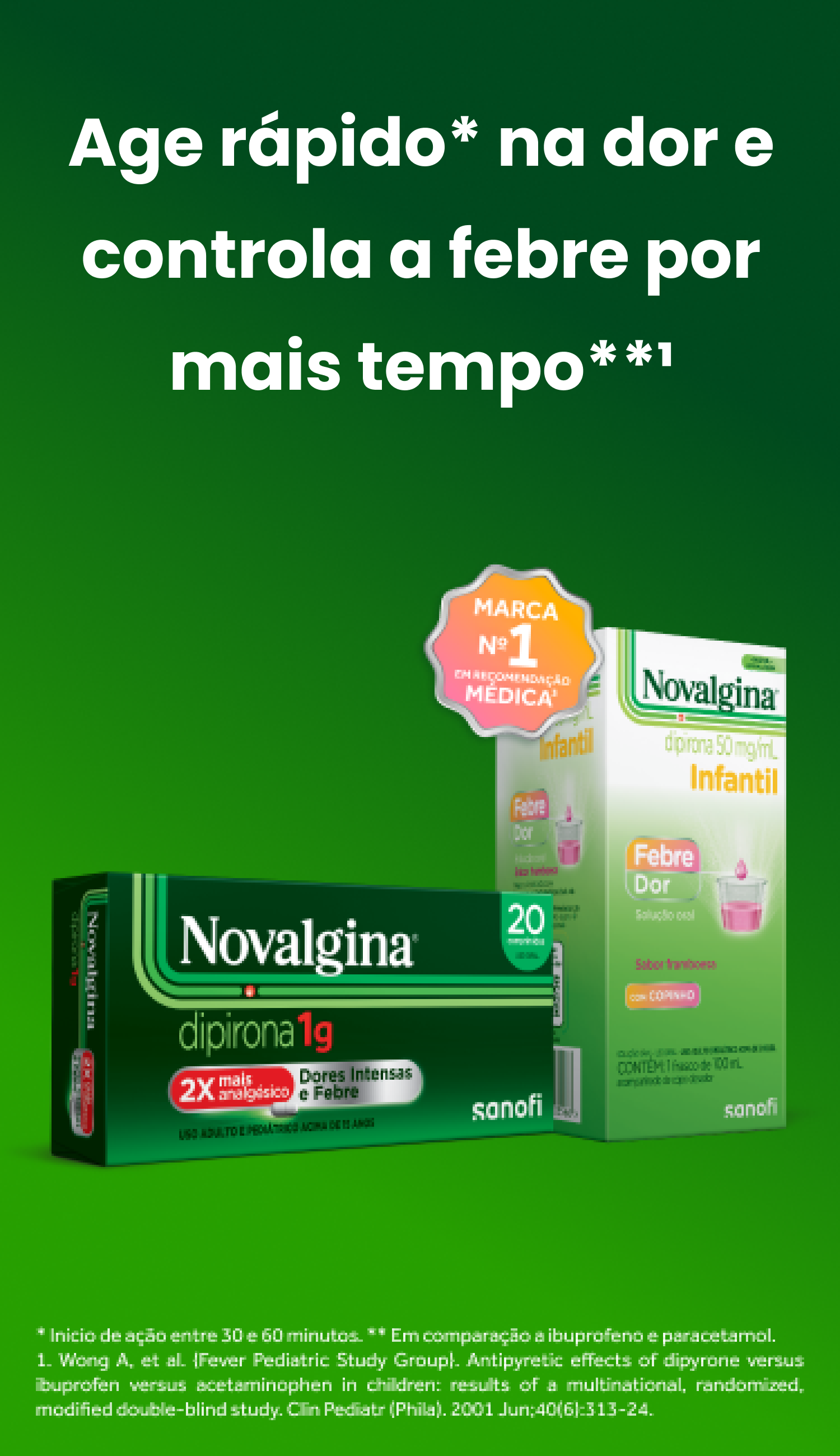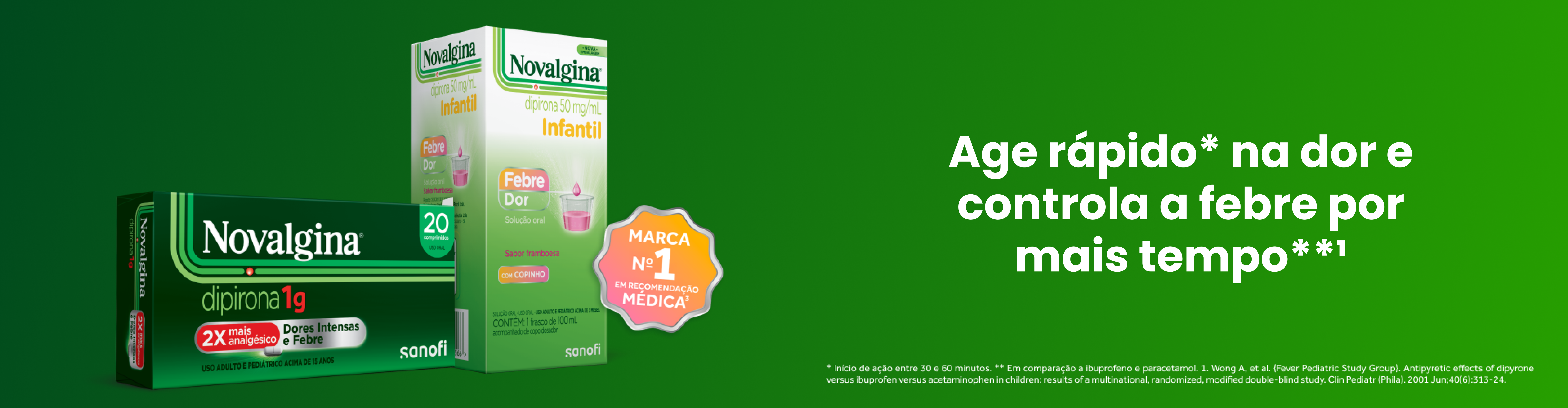 Assim, na hora de escolher o seu analgésico e antitérmico, lembre-se: Novalgina age rápido* na dor2