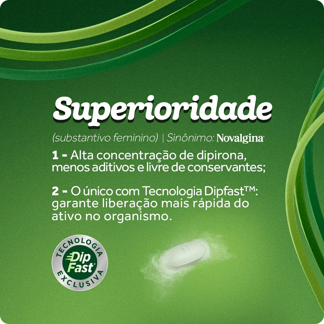 Novalgina® é a única com tecnologia DIPFAST® que garante uma liberação mais rápida do ativo no organismo.